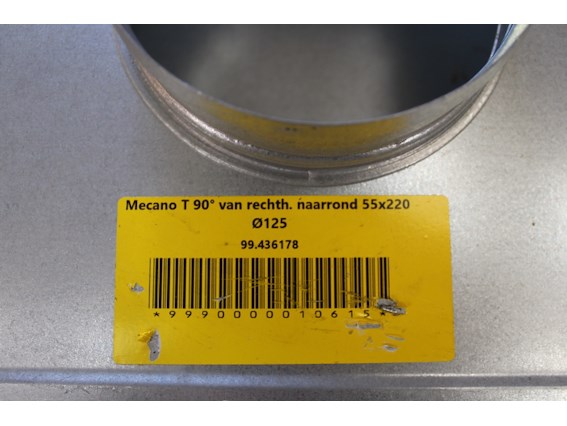 Ongebruikt, 5 x Mecano T 90° van rechth. naar rond 55x220 Ø125