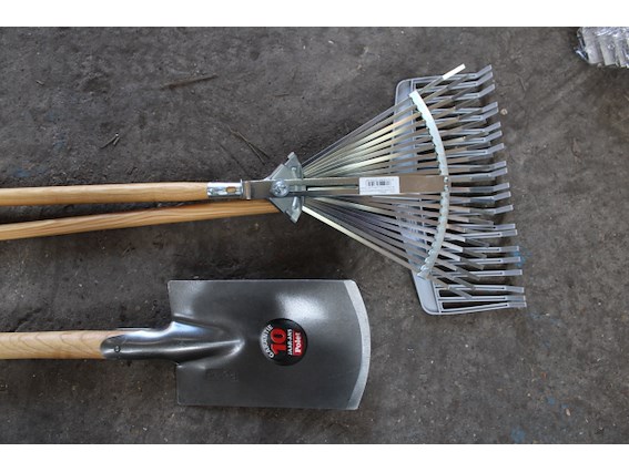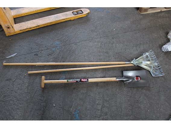 Plm 3 stuks, Ongebruikt, Partij tuinmateriaal, 1 x PROF.SPADE 280/180/3 T-ST 95CM, 1 x BLADHARK KUNSTSTOF VAST 380MM M/ST 1,5M, 1 x BLADHARK VERSTELBAAR 22T/410MM M/ST 1,5M