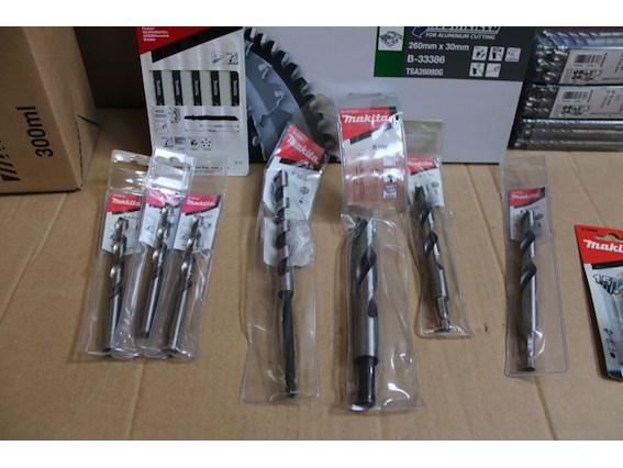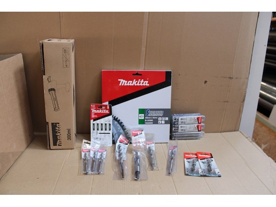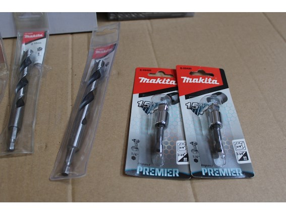Plm 15 stuks, Partij makita toebehoren, Kitpistoolhouder set A, 300 ml, Decoupeerzaagblad 75 x 0,9 mm, 3 x Betonboor, SDS-PLUS, Nemesis2, 10 x 115 mm, Houtboor 16 x 180 mm, Metaalboor HSS-G, 9,5 x 125 mm, Houtboor 12 x 150 mm, 1/4", Slangenboor 12 x 200 mm, 2 x Adapter voor kantelbare dop Impact Premier, 50 mm, 3/8" – 1/4"