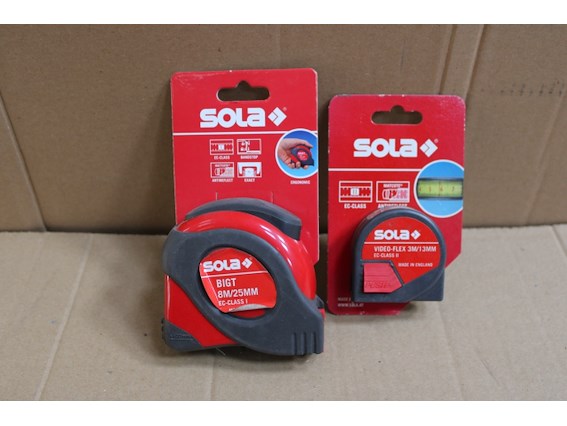 Ongebruikt, 2 x Sola meter, 1x Sola video-flex 13mm VF3 (021250435) + Sola rolmeter type Big T 8M (021250015)