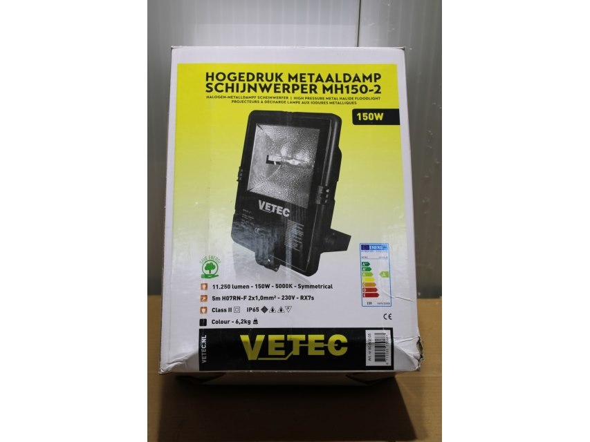 Ongebruikt, 2 x VETEC HQIT Werf- en kraanlamp 150W M/LAMP + 5MTR SNOER GEMONTEERD
