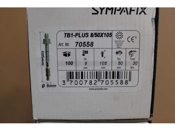 Ongebruikt, 3 x Sympafix Doorsteekanker TB1-PLUS 8/50x105, verzinkt (100st)