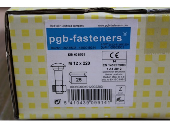 Ongebruikt, PGBfast Houtbout 4.8 DIN 603/555 M12x220 Zn/25