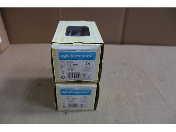 Ongebruikt, 2 x PGBfast Houtdraadbout DIN 571 Ø6x120 Zn/100