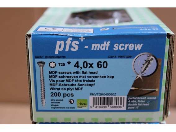 Ongebruikt, 4 x PGBfast MDF-schroef pfs+ VK 60° Ø4x60 Zn/200