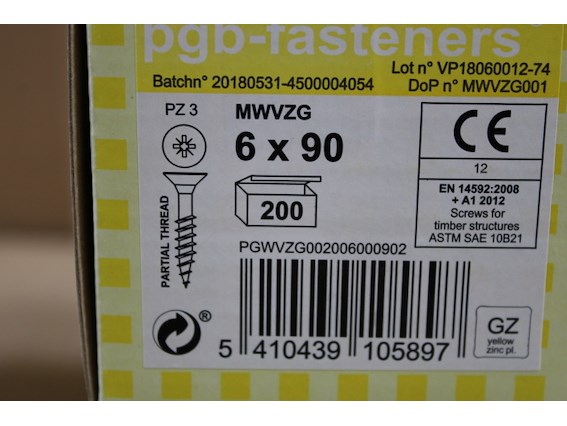 Ongebruikt, 2 x PGBfast Spaanderplaatschroef VZK-Z Ø6,00x90 ZnGeel/200