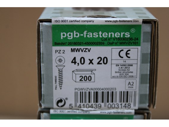 Ongebruikt, 4 x PGBfast Spaanderplaatschroef A2 VZK-Z Ø4,00x20/200