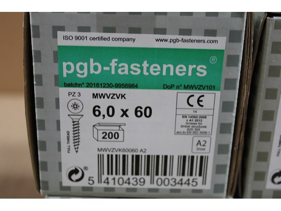 Ongebruikt, 4 x PGBfast Spaanderplaatschroef A2 VZK-Z Ø6,00x60/200