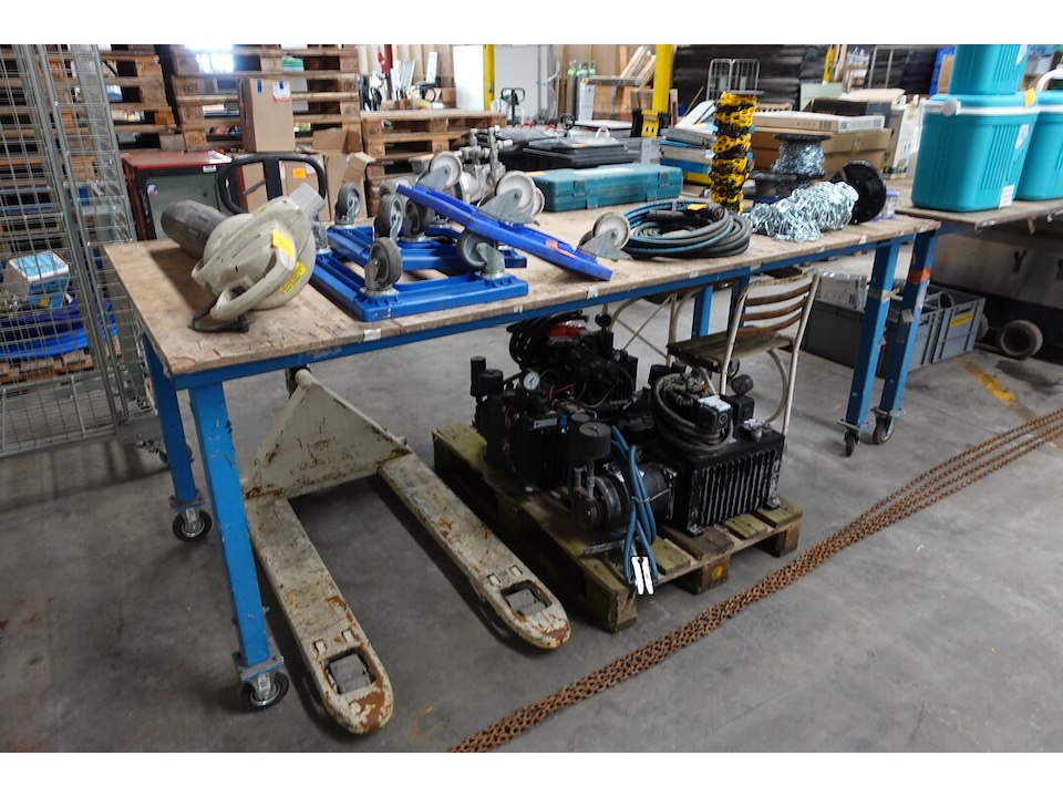 Verrolbare werktafel (+-1m20x2m50, 1m hoog)
