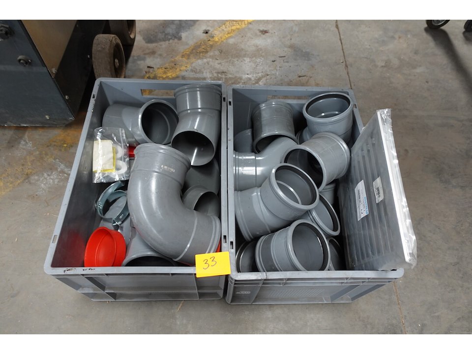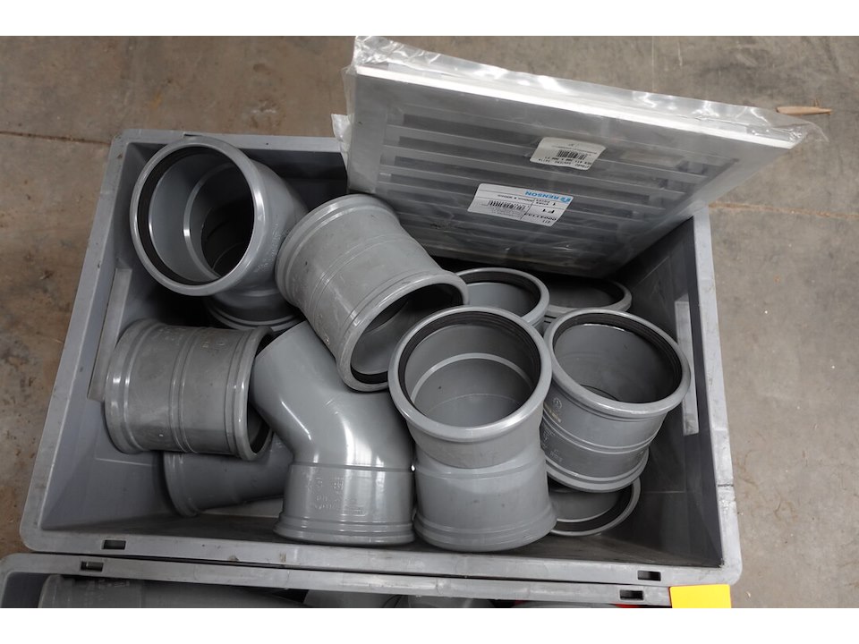 2x pvc box met diverse afvoerbochten en hulpstukken