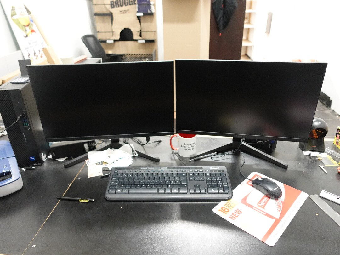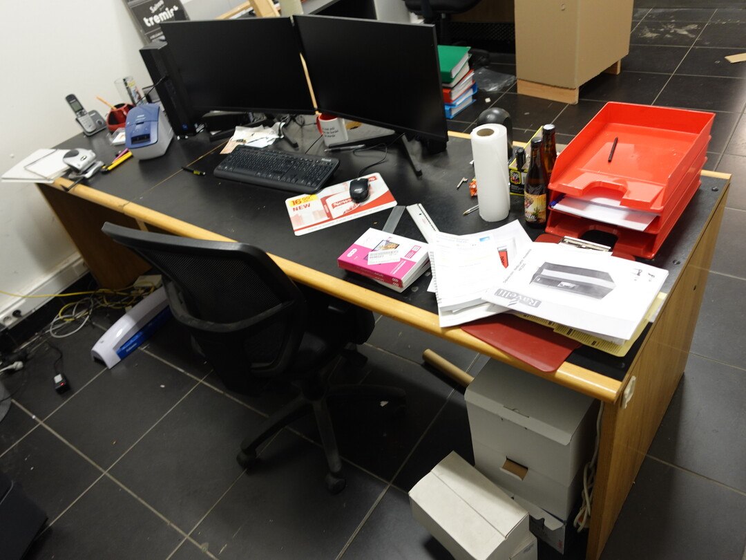 Vv: bureau , 2 schermen samsung, computer Asus , rek , presentatierek , 2x bijzetkastjes, .... alles moet mee exl lot 30 <br /> locatie: inkom