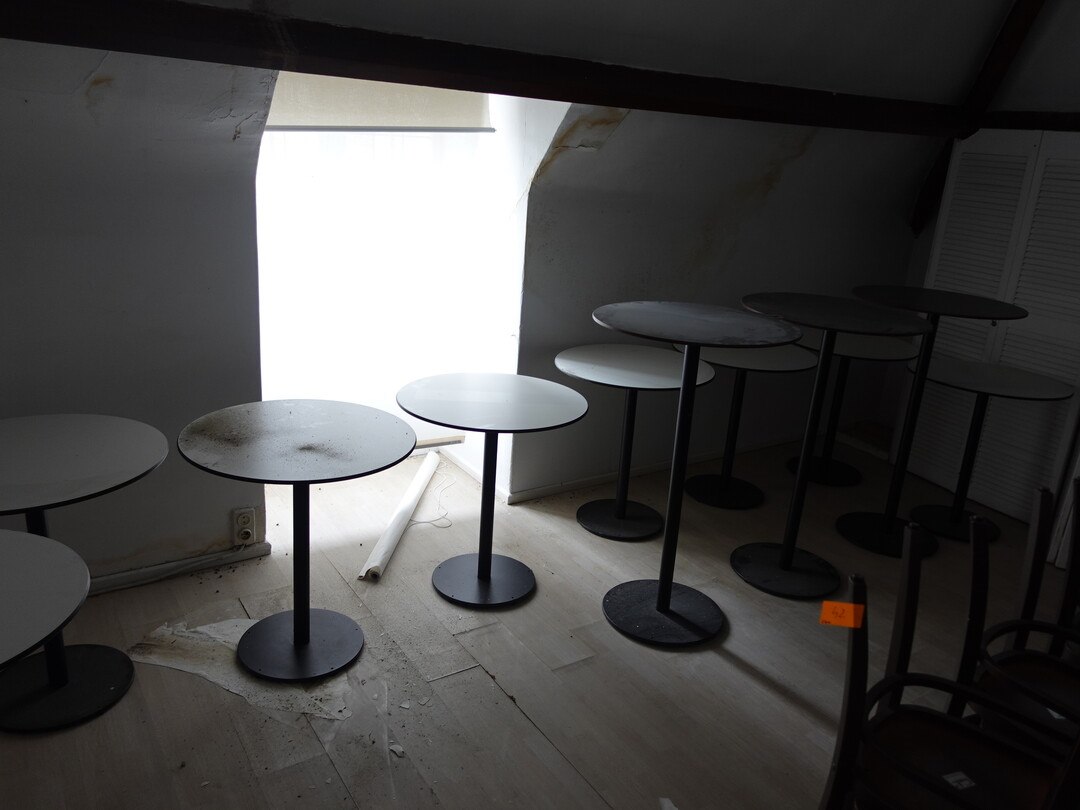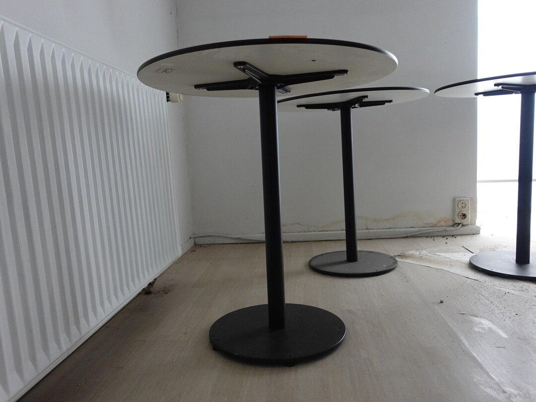 Dia: 690 , hoogte: 755, samen met 3 bartafels , dia:690 hoogte: 1115 , vv metalen voet <br /> locatie: zolder
