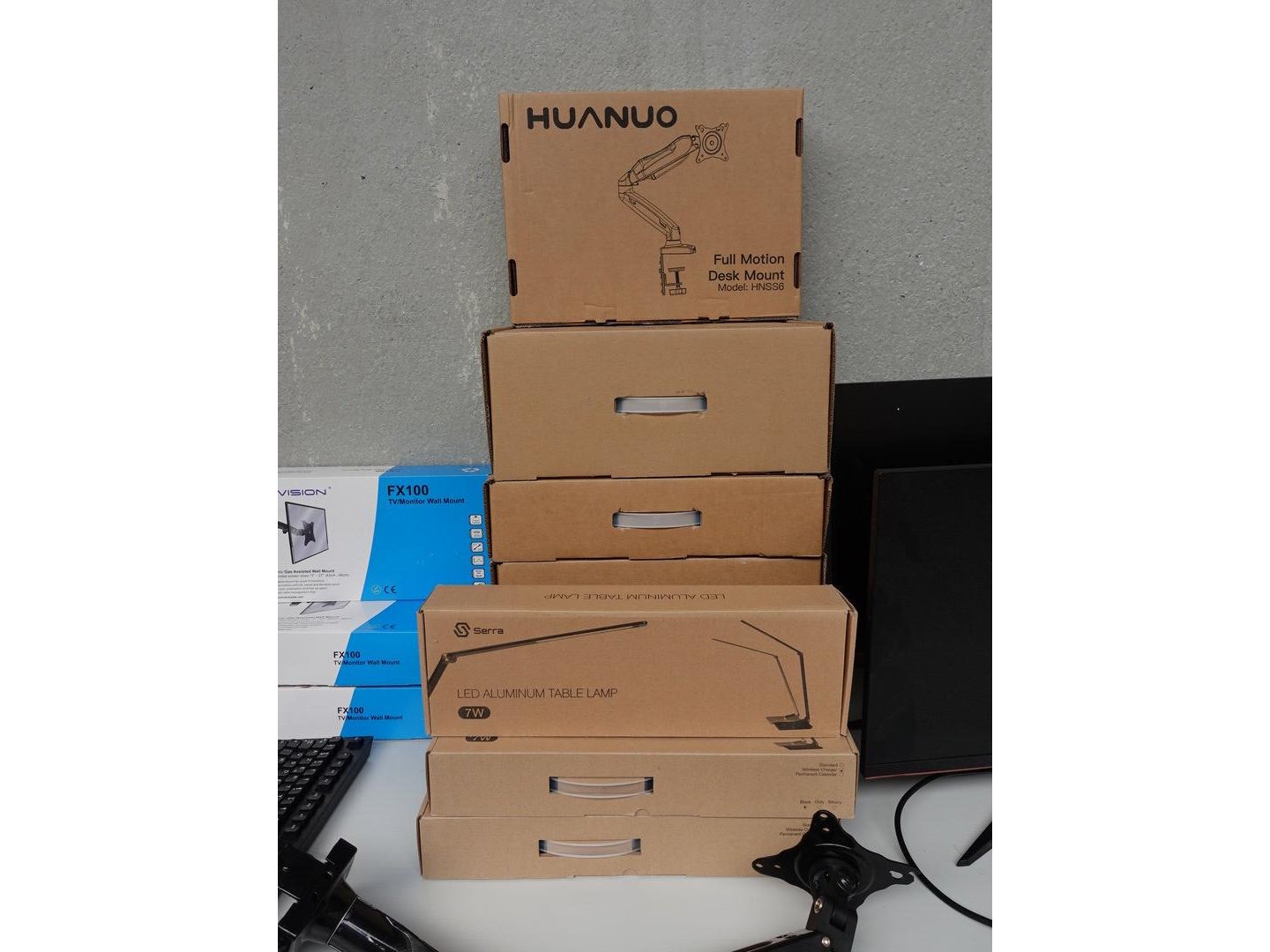 Oa monitor LG, 2x monitor AOC, 3x bevestigingsarm Invision, 6x bevestigingsarm Huanuo, …
