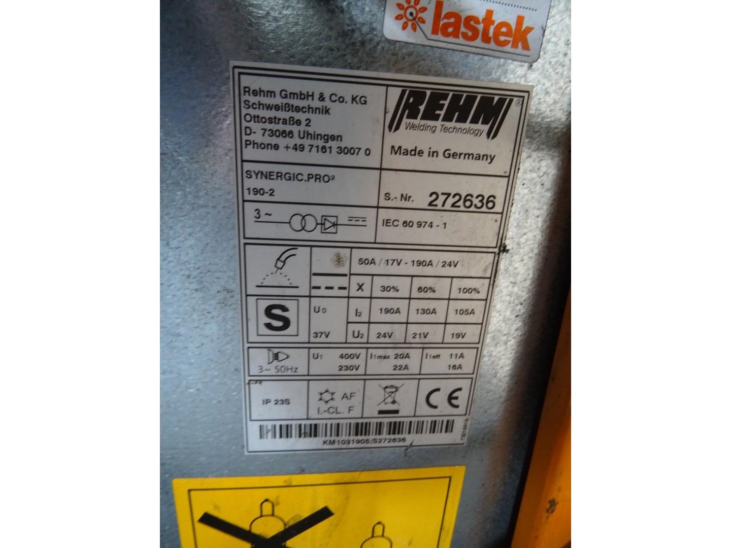 Type: Synergic.pro 190-2, 400V<br /> locatie: magazijn