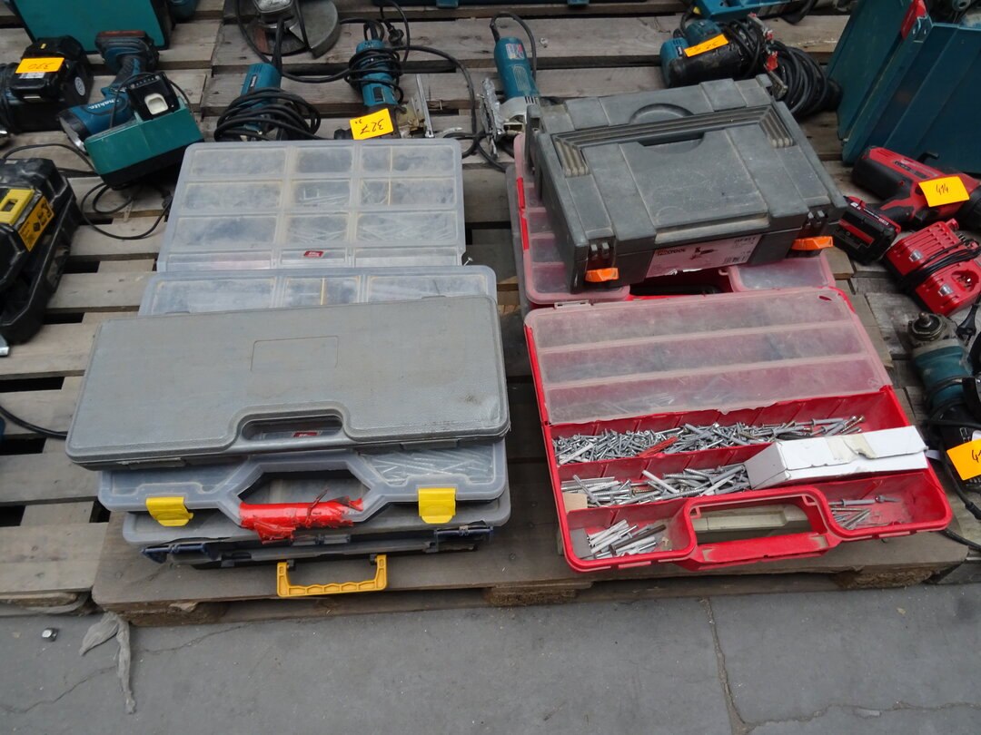 Partij sorteerkoffers + inhoud