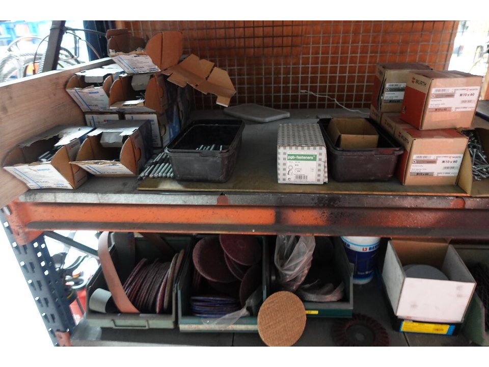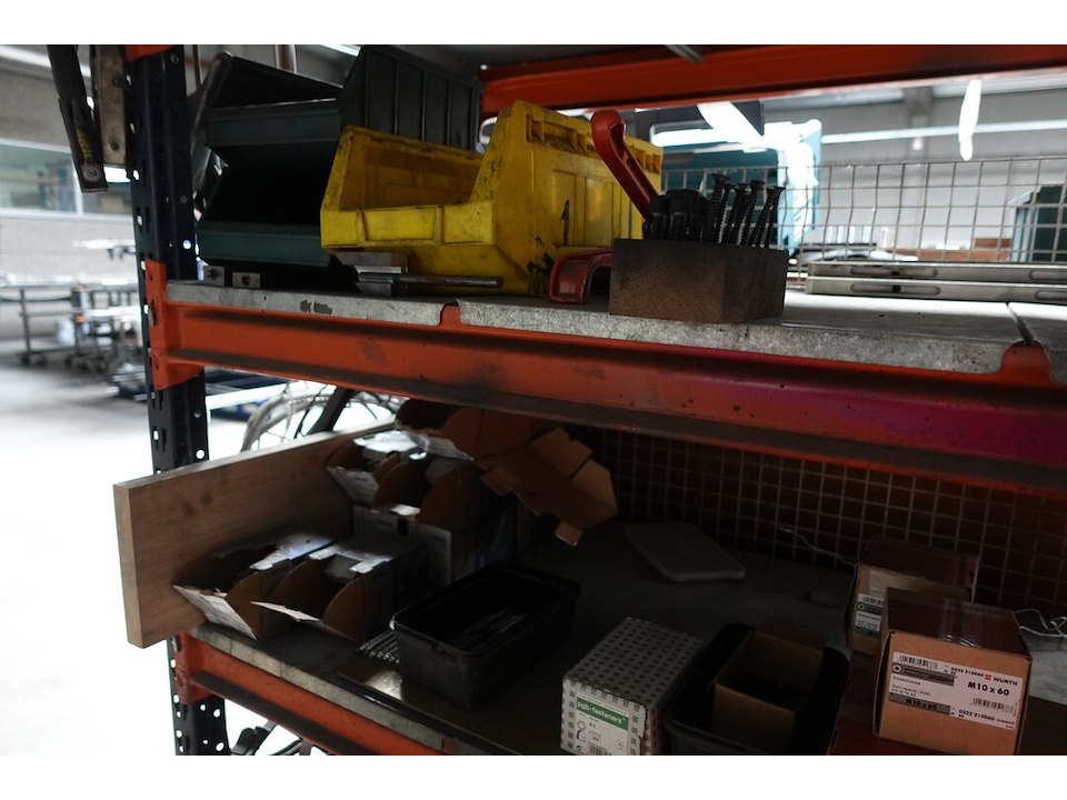 Metalen magazijnrek + inhoud