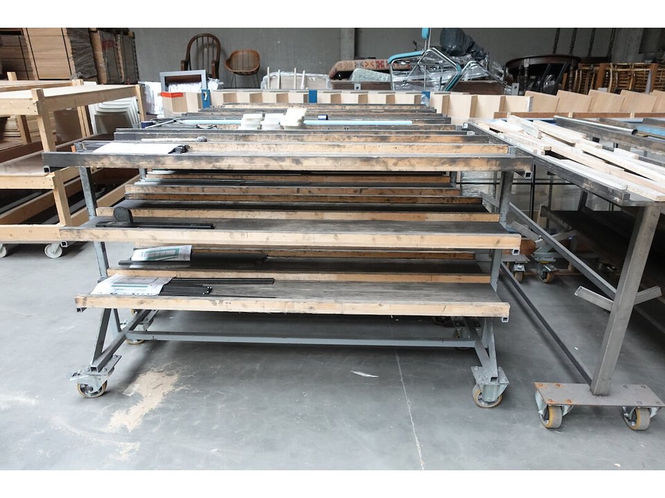 6x verrijbare metalen kar + inhoud
