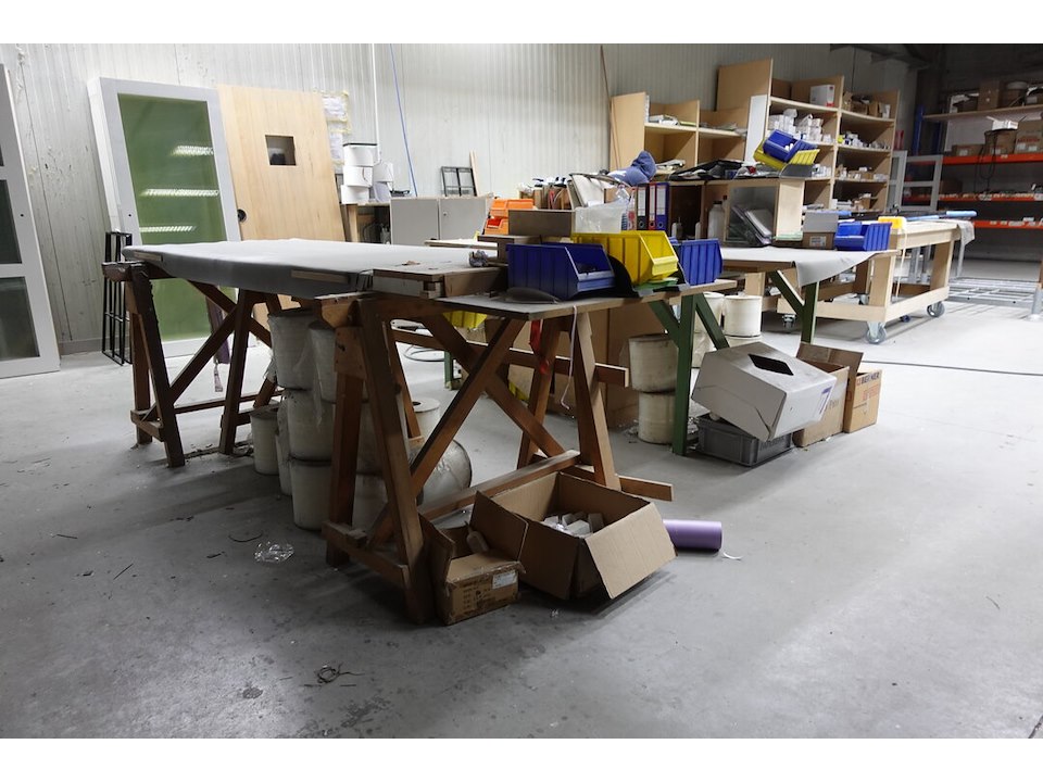 2x metalen werkbank x houten werkbank
