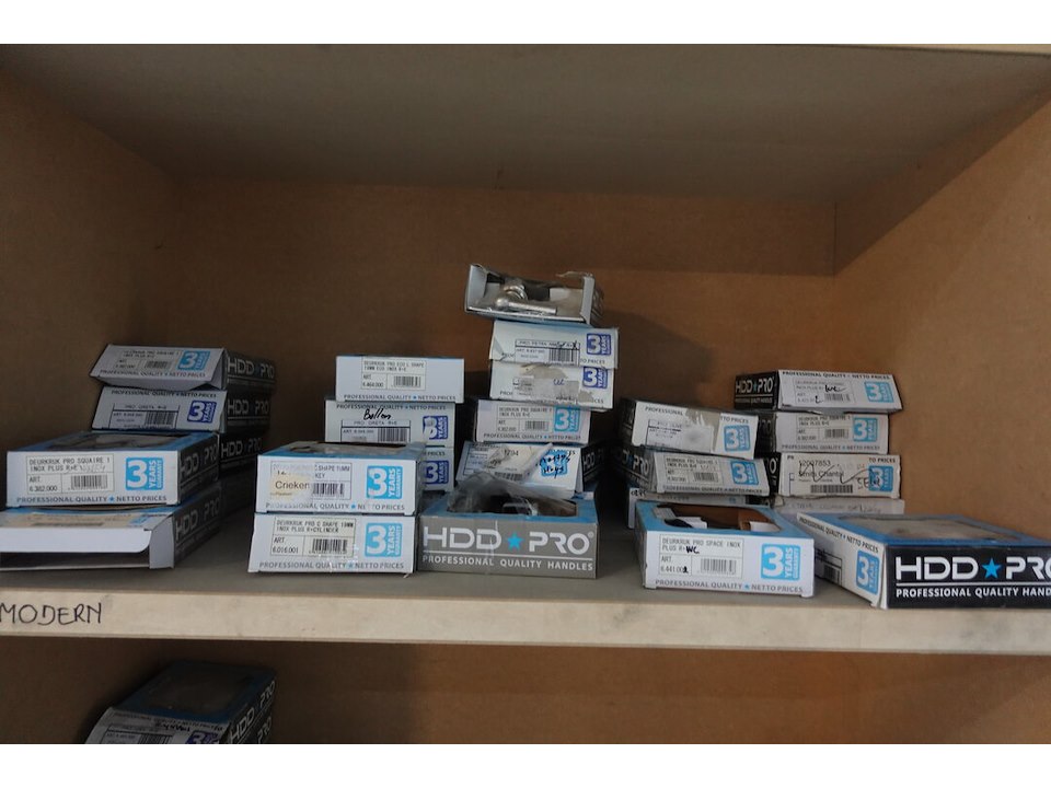 Oa. deurklinken, sloten, tochtborstels, ...<br /> locatie: verpakking