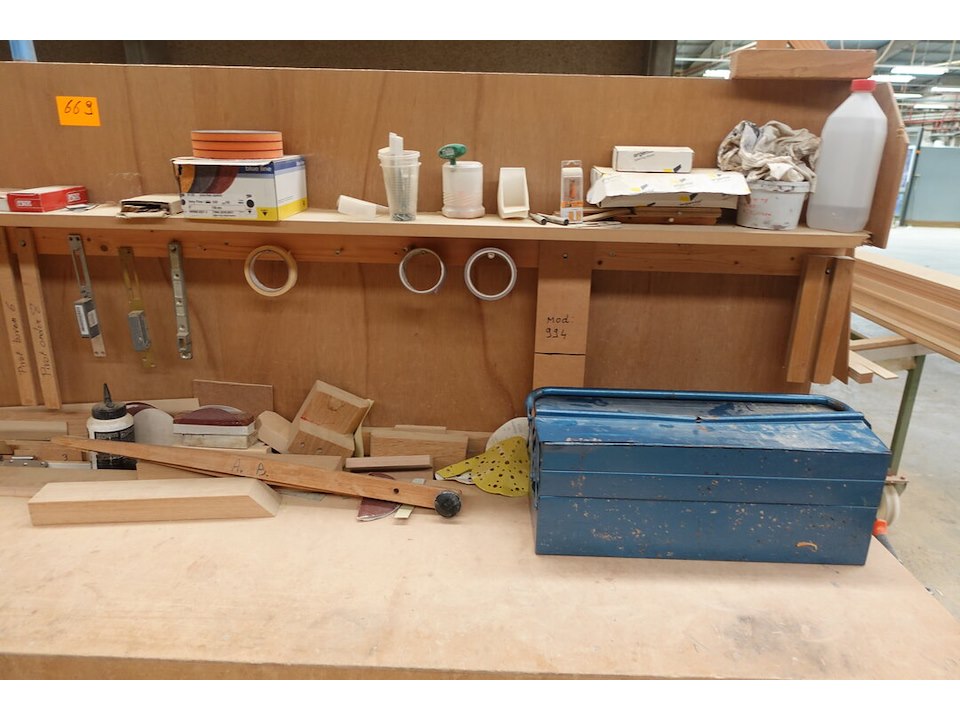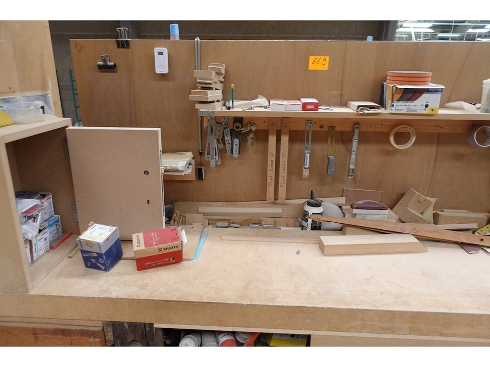 2600x650x850, vv. klein materiaal, 2x houten schraag<br /> locatie: productie