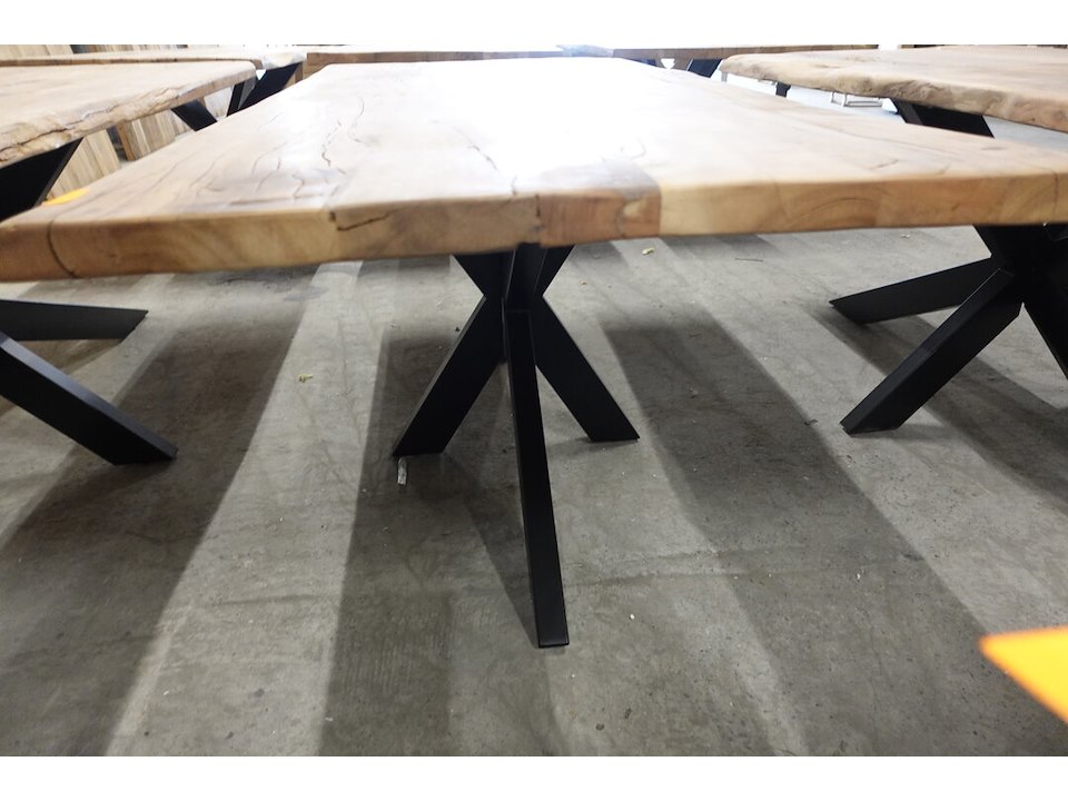 Oude teak, vv metaal spiderpoot, 1900x950x780