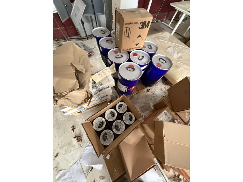 Alles moet mee, oa pvb-folie Saflex, vloeistoffen 3m, reinigheidsmiddellen Amcoss, klein materiaal, …