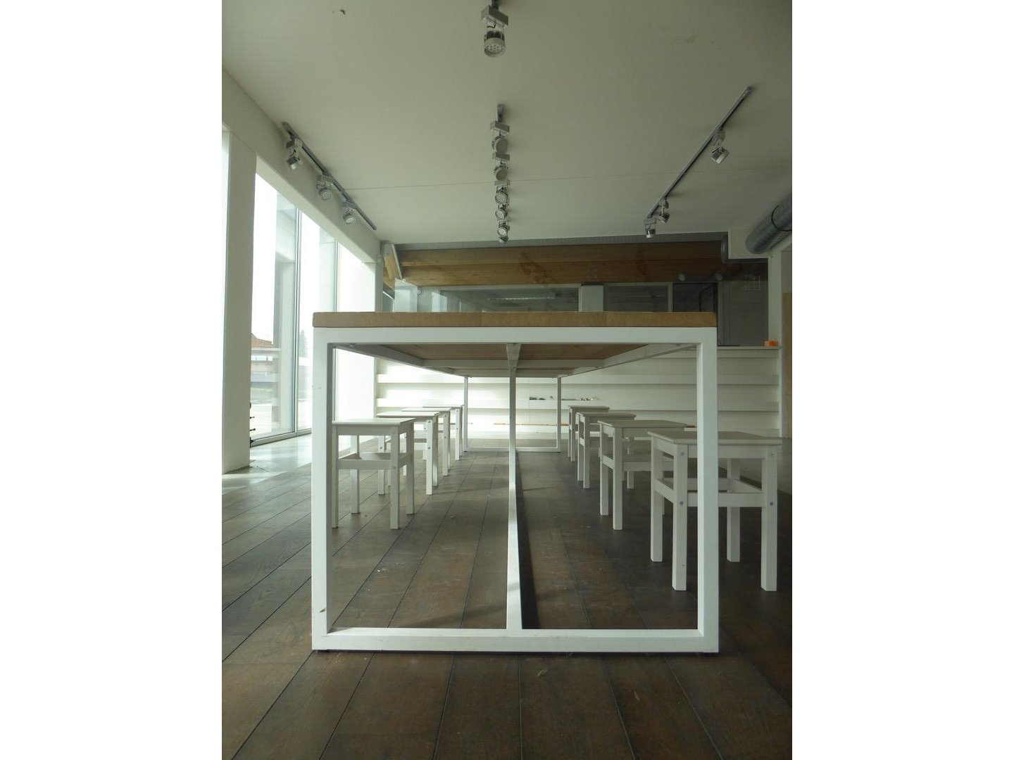 Metalen tafel met houten blad