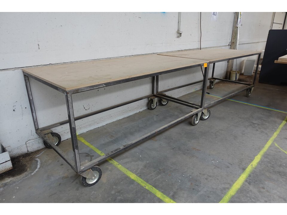 2x verrijdbare metalen werktafel