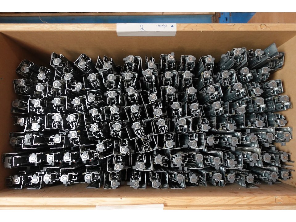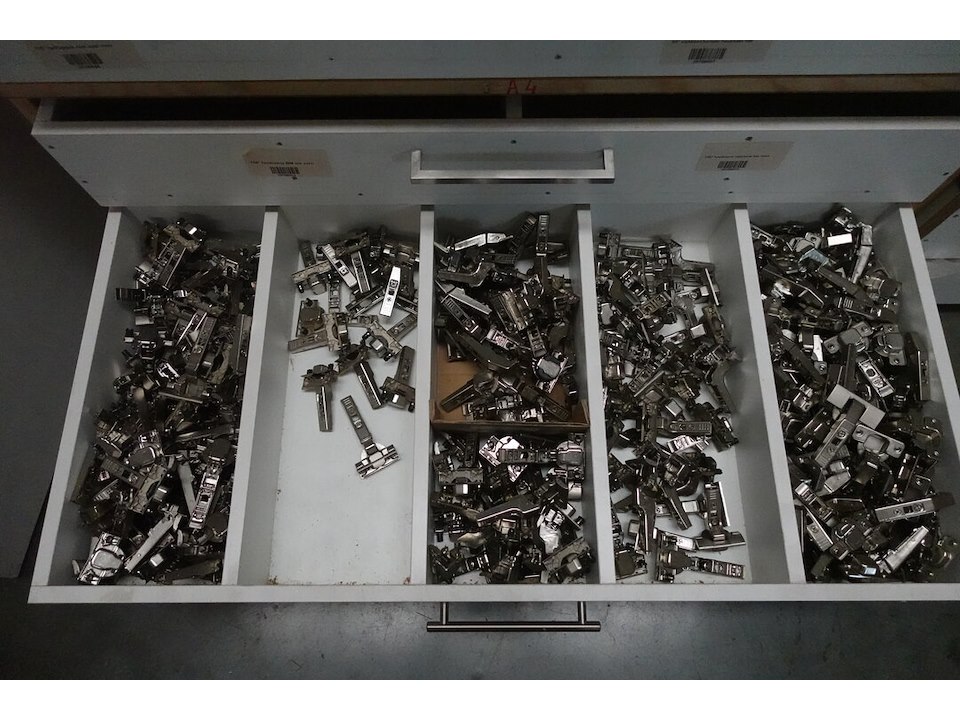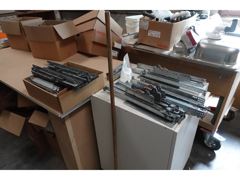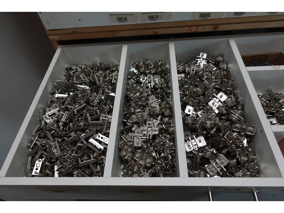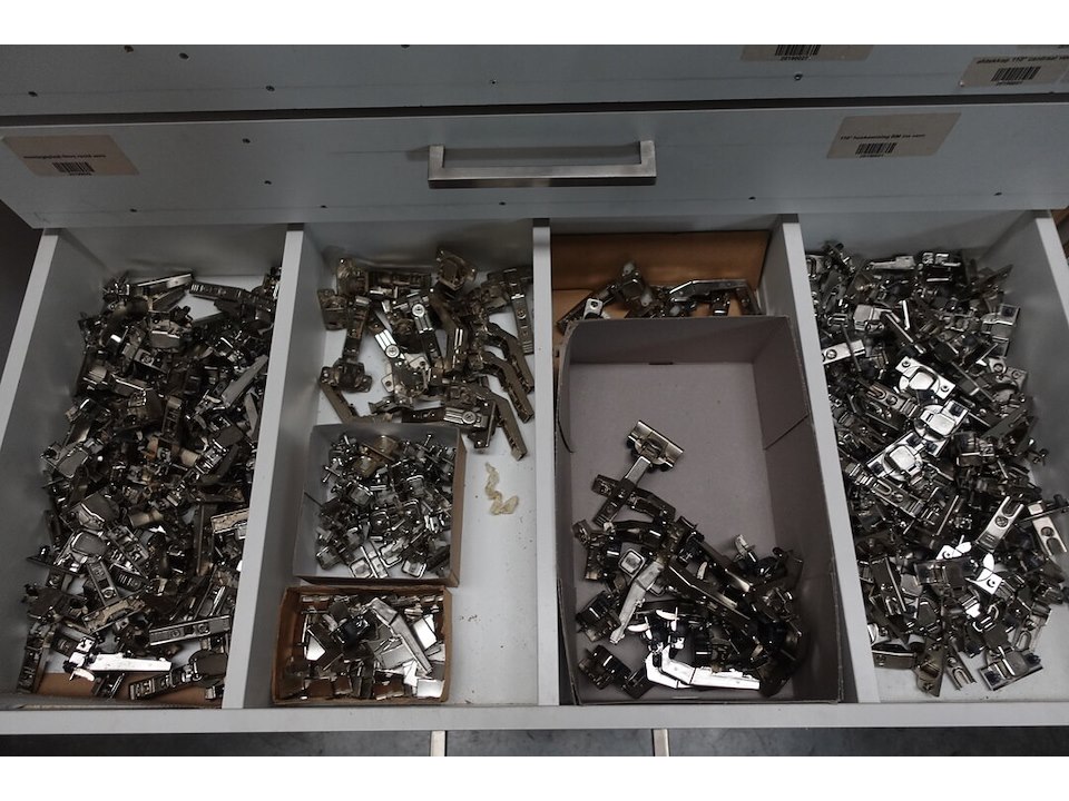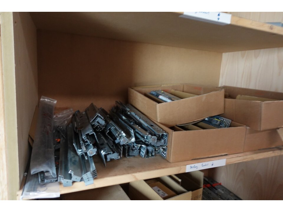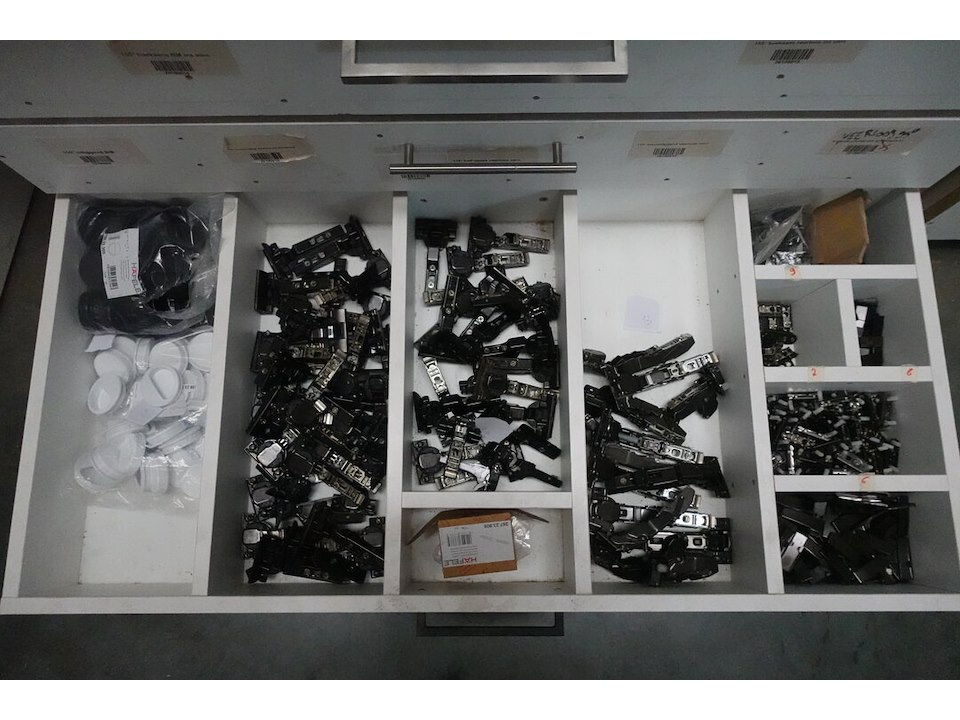 Oa. toebehoren keukens, schuiven, scharnieren, bestekbakken, ventilatieroosters, ...<br /> locatie: kleine smesse