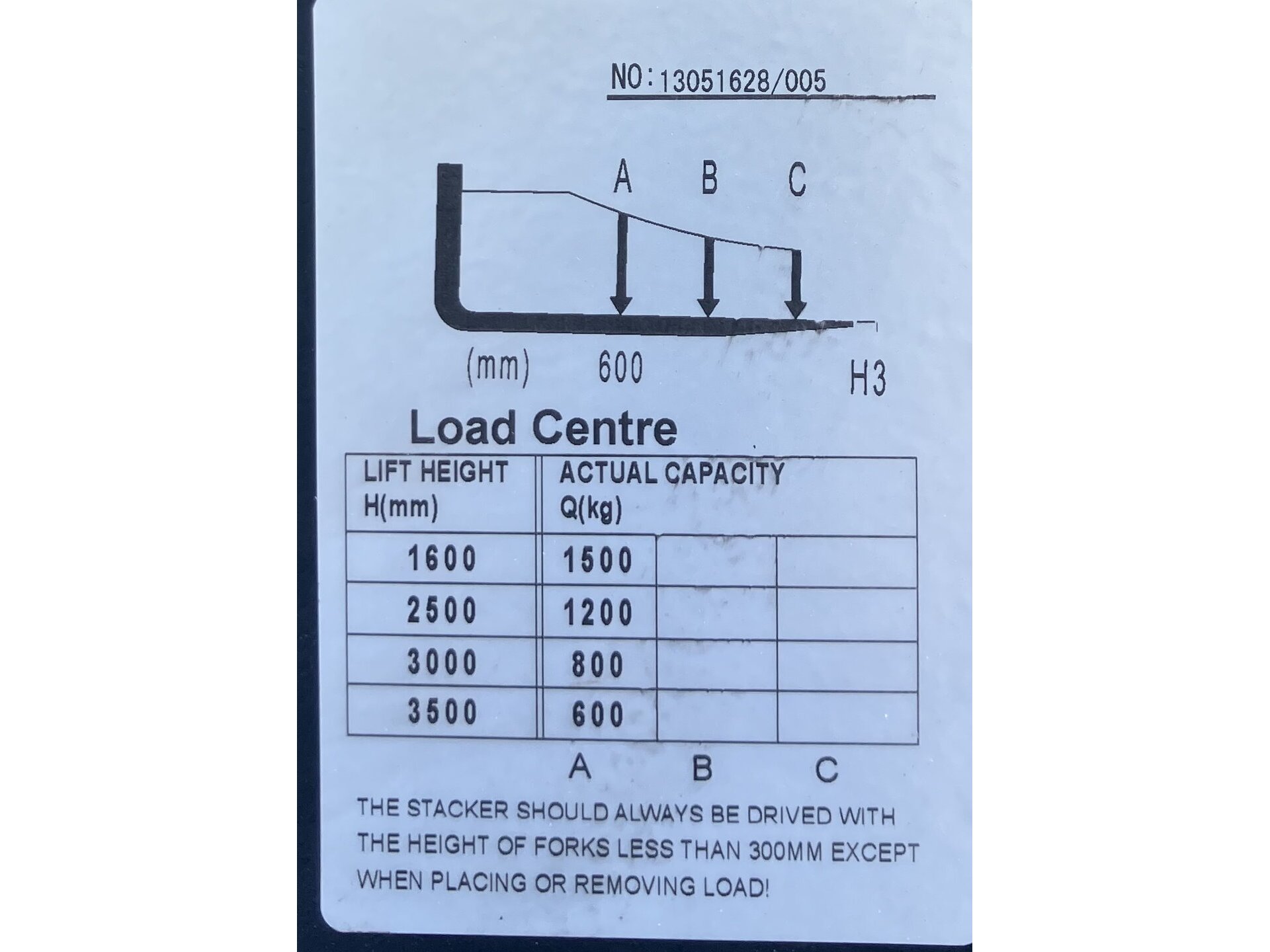 12V met nieuwe batterij + lader - Heffen werkt hydraulisch maar aandrijving is niet elektrisch - Laadcenter: 600mm - Lifthoogte: 3000mm - Ametingen: 570x1100mm - Bouwmaand/jaar: 05/2013 - Gewicht: 543kg - Conditie: nieuw<br /> Nieuw