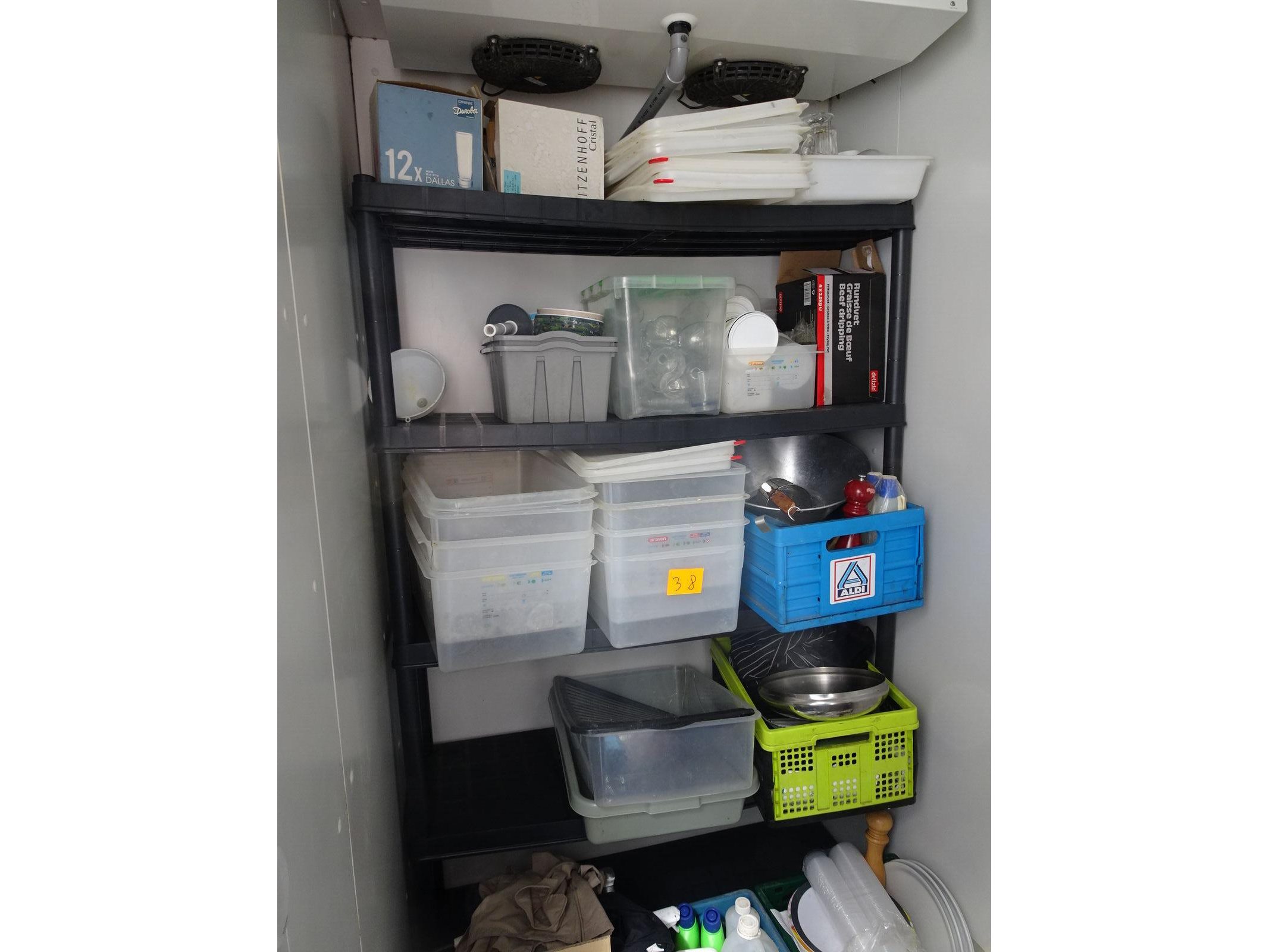 Partij diversen: potten, bakken, glazen, borden, schorten,...<br /> locatie: buiten