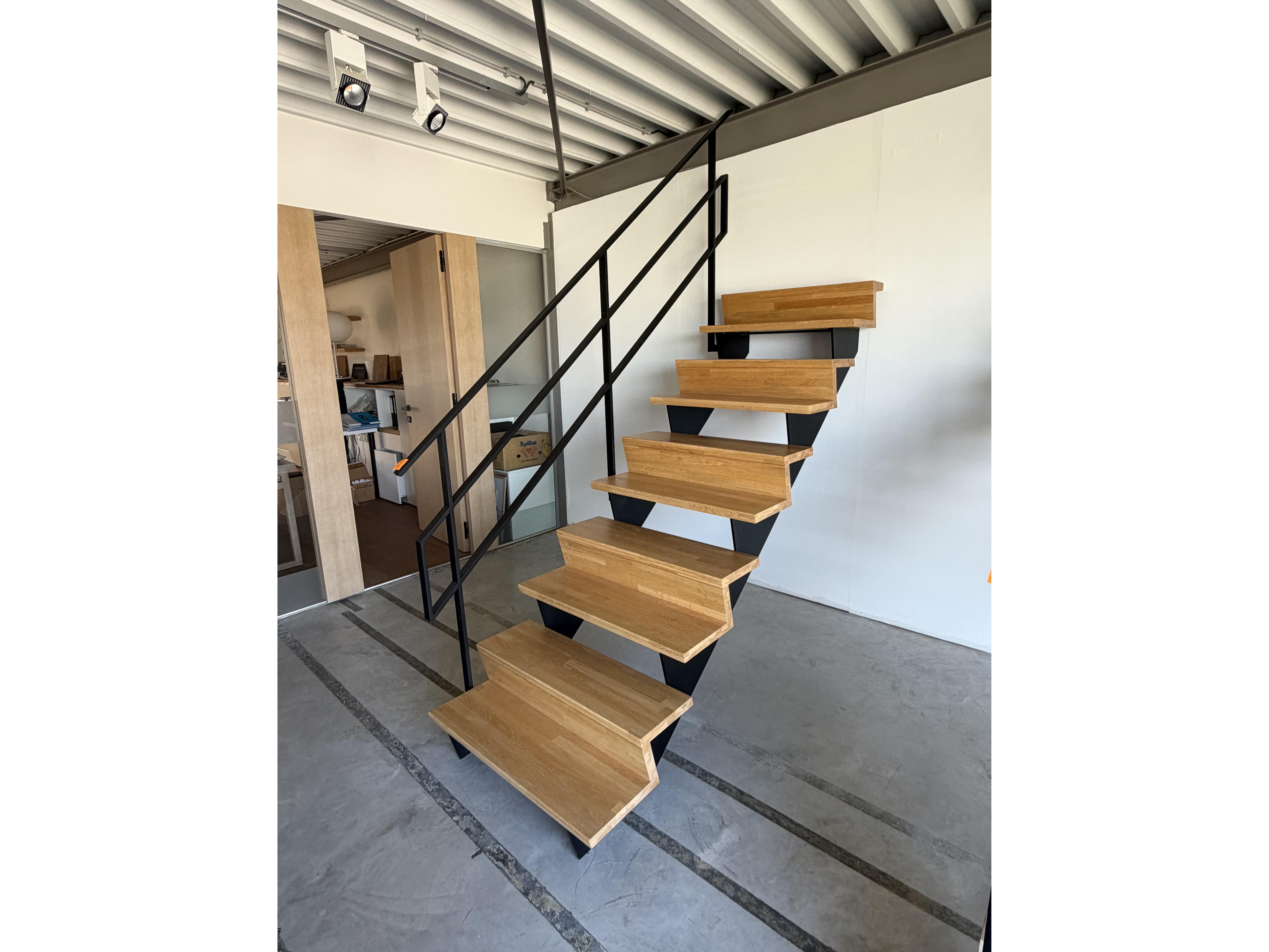 Metalen trap met houten treden 900x1800, 10 treden<br /> locatie: 1e verdiep
