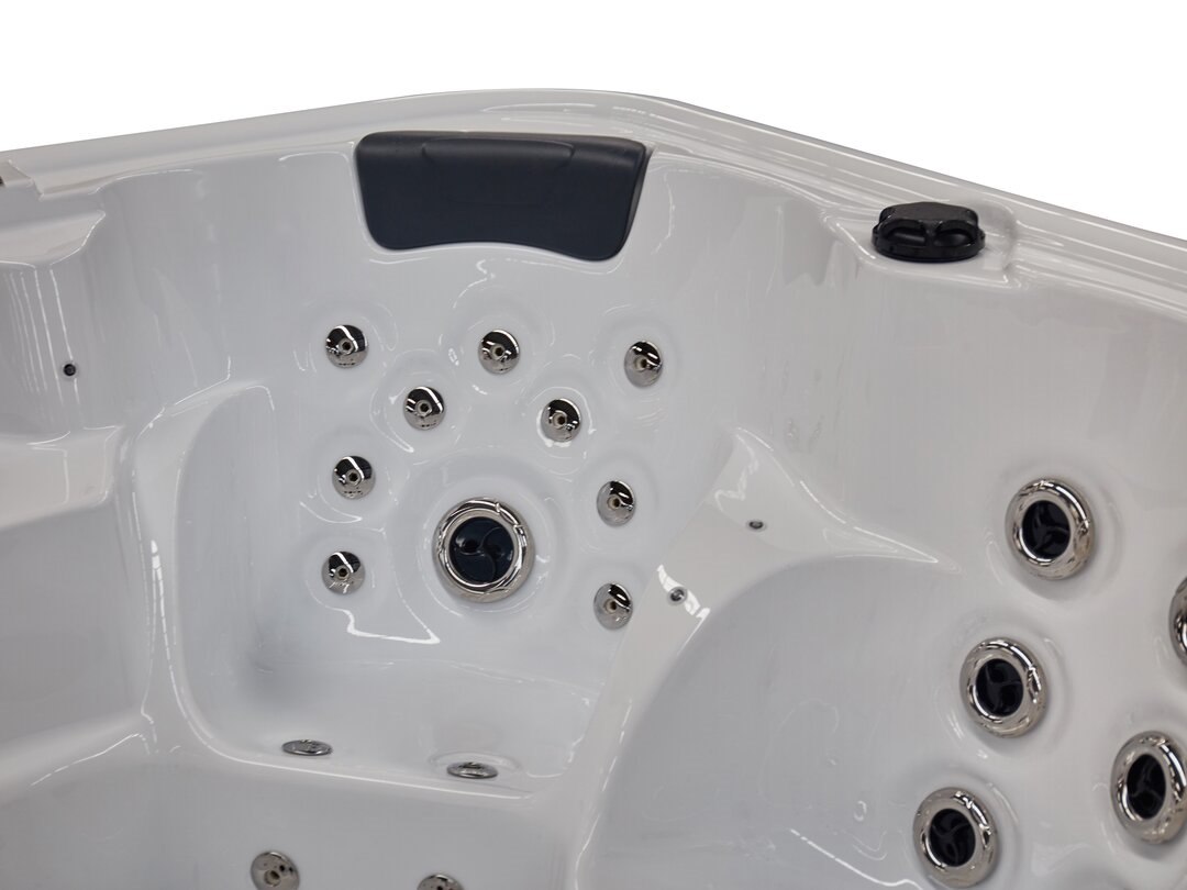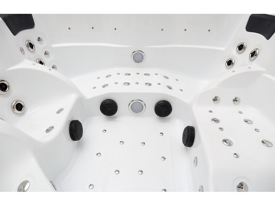 5 Persoons Outdoor Spa 208x208 cm - incl. 2 ligbedden - Wit bad / Naturel houten kleur zijkant