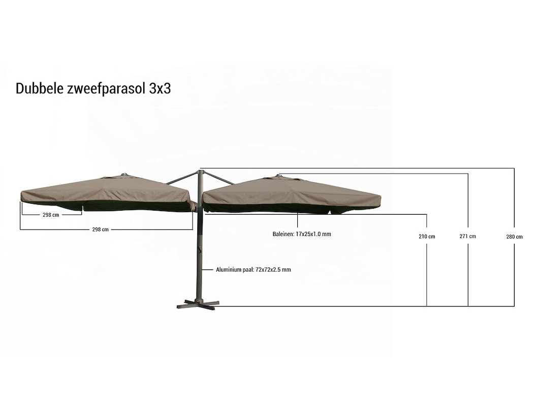 Dubbele hangende parasol Taupe / sandy (2 * 300x300cm)