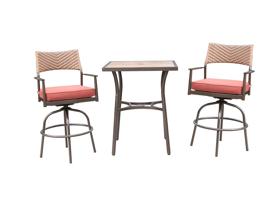 Tuinset 3-delig - barset hoog - bruin wicker + rode kussens
