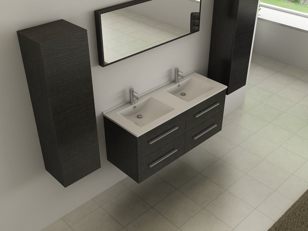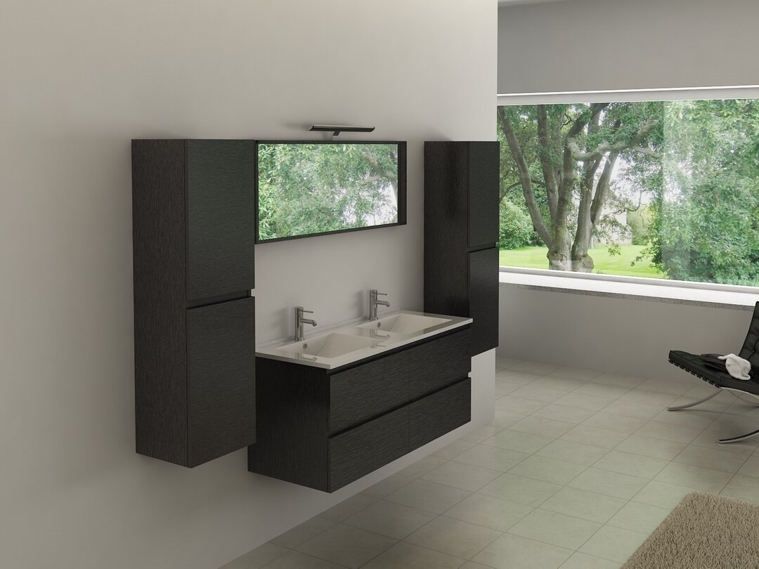 2-persoons badkamermeubel 120cm zwart - hout decor - Incl. kranen