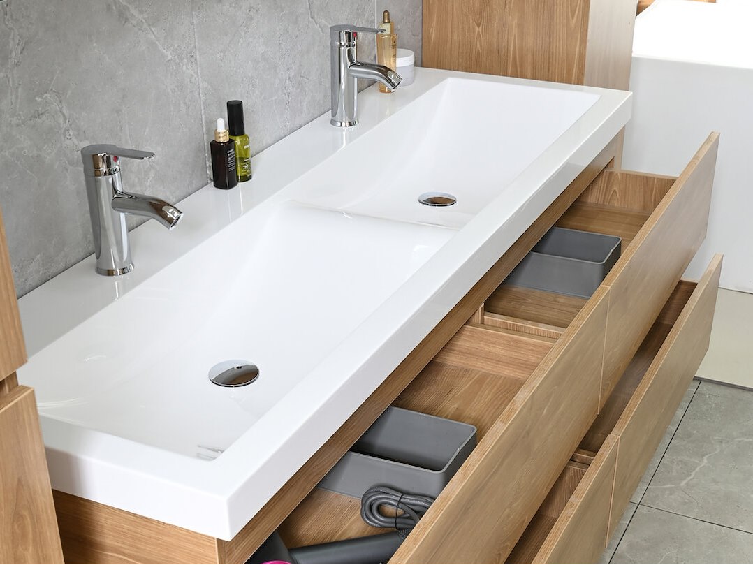 2-persoons badkamermeubel 145 cm licht hout decor - Incl. kranen