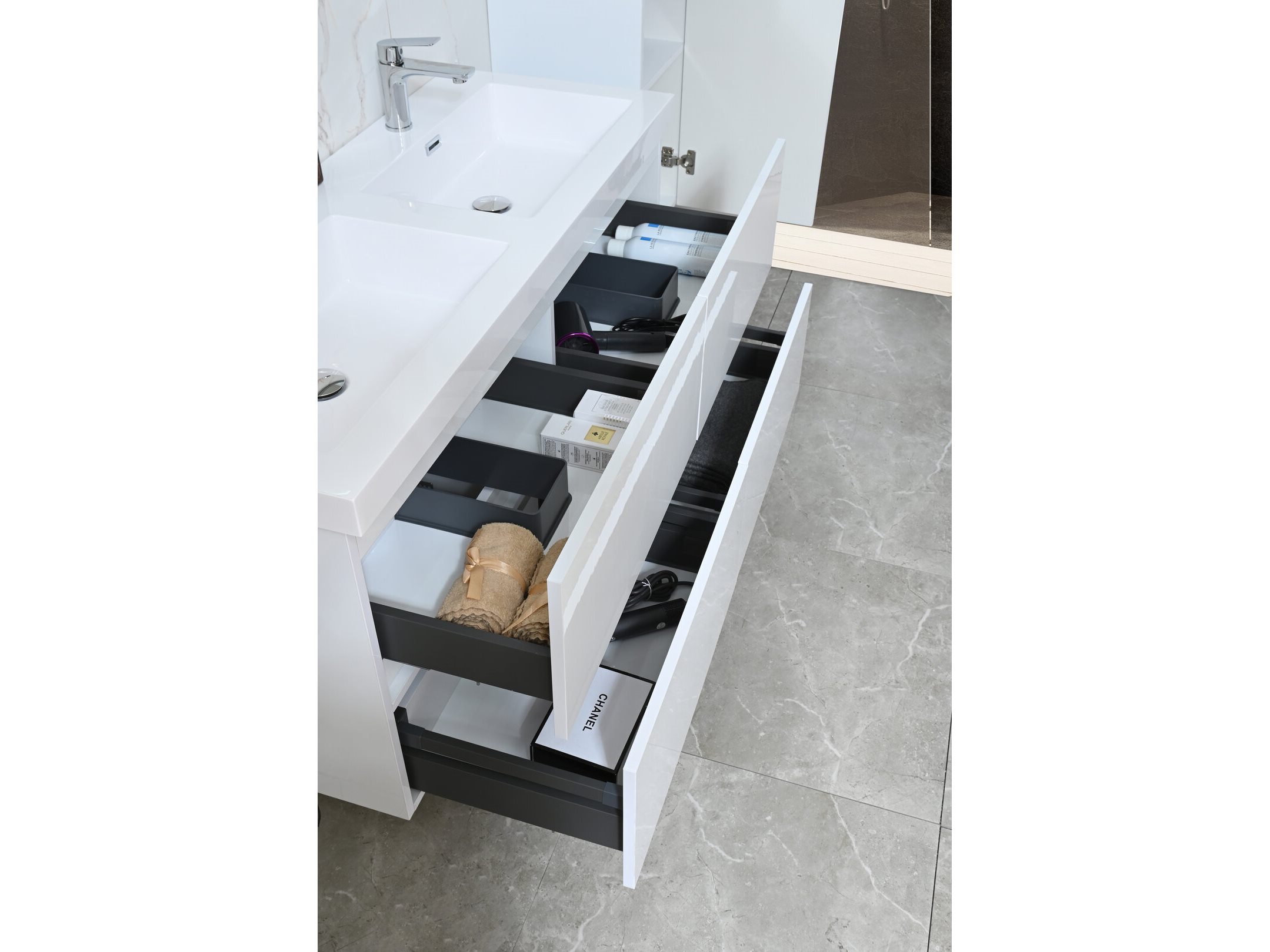 145 cm - Hoogglans wit + witte dubbele wasbak - Incl. kranen