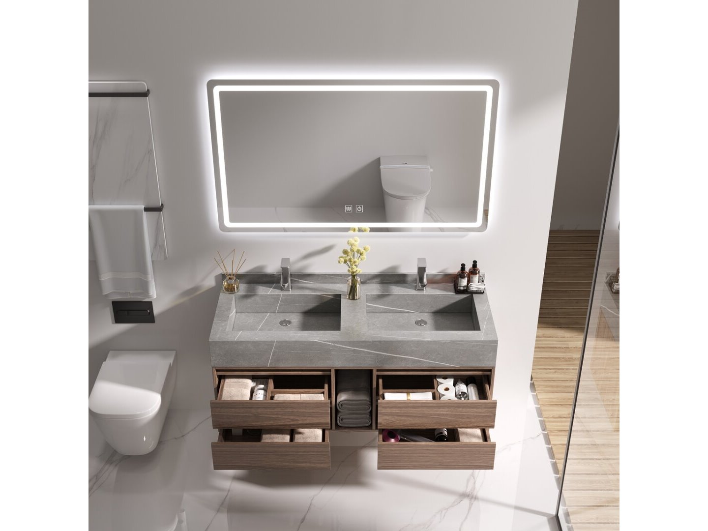 2-persoons - 120 cm - Hout decor met grijze marmeren wasbak - Incl. kranen