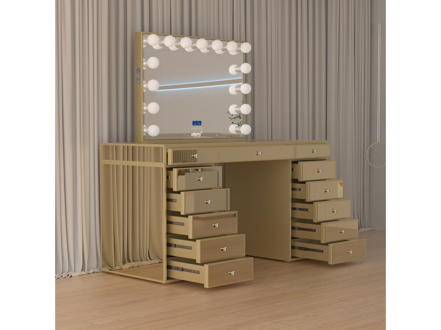 Luxe kaptafel met verlichting - 1500x600x810mm - Goudkleurig - Incl. krukje