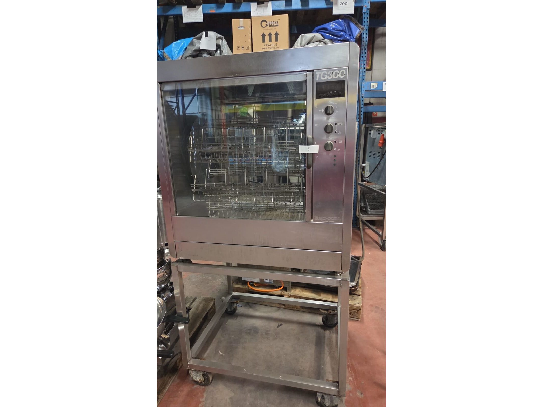 Electrisch, 380V , op inox onderstel en wielen, goed voor 30 kippen.