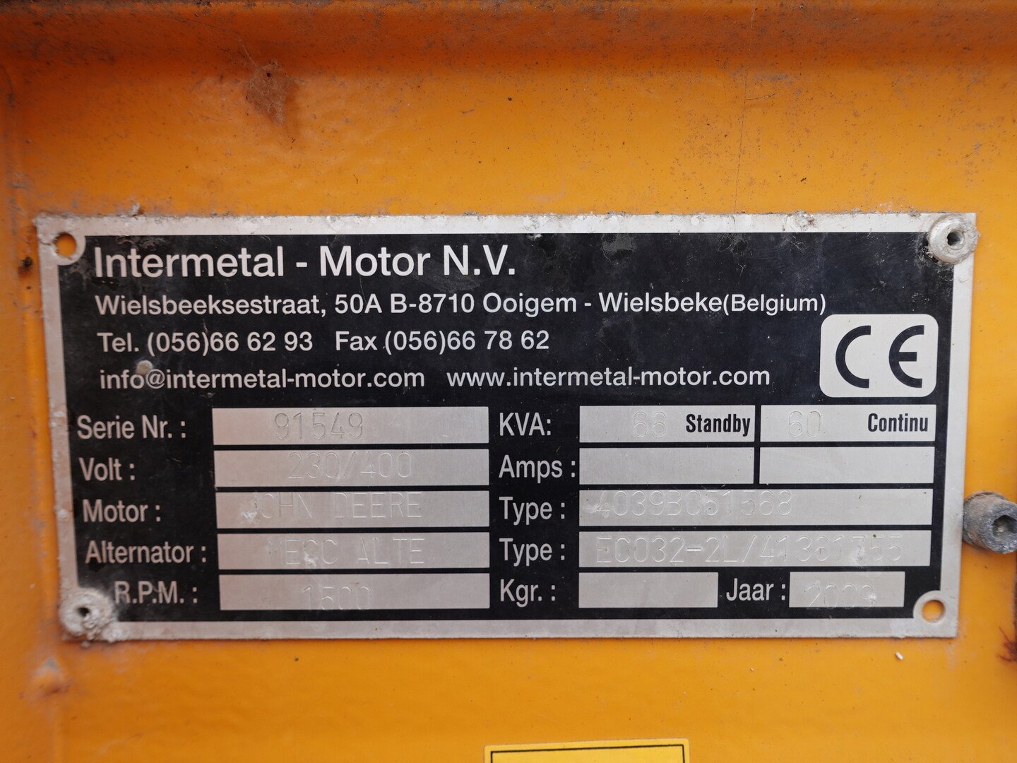 Type: 4039b051568, Jhon Deere, kva 66/60, 1x sleutel, Uren 18355 ( Afhalen op afspraak! ) <br /> locatie: Koer