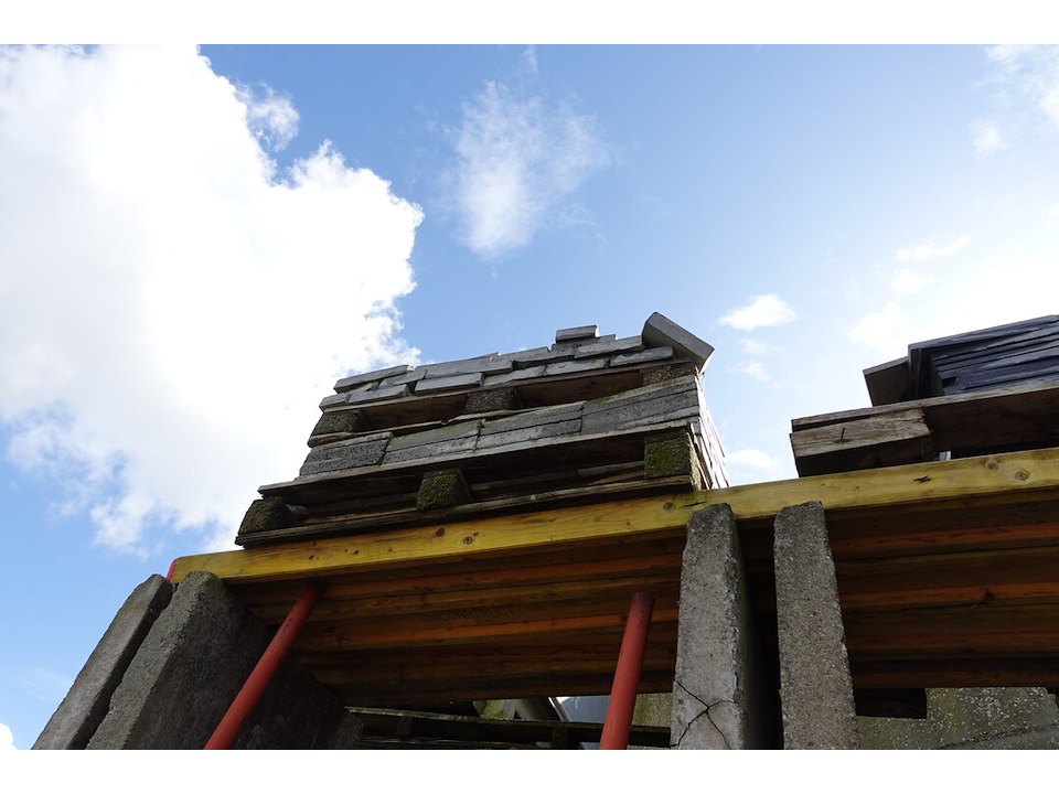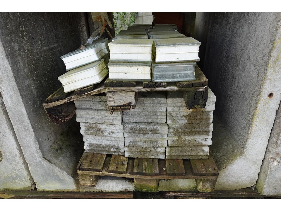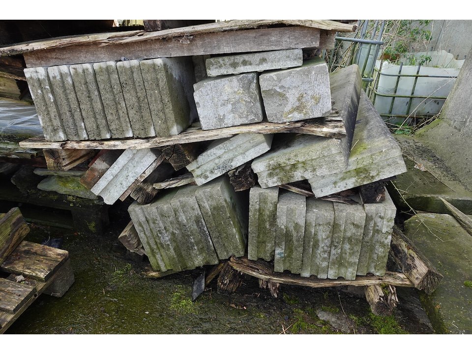 Diverse boordstenen , metaal , Rode stenen, glastegels, ...<br /> locatie: Grasveld