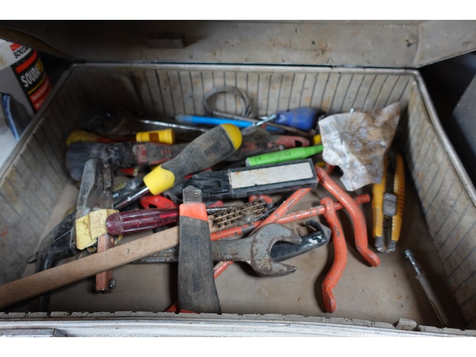 Partij diversen, handgereedschappen, bakjes, kabel,... ( alles moet mee! ) <br /> locatie: Loods 1