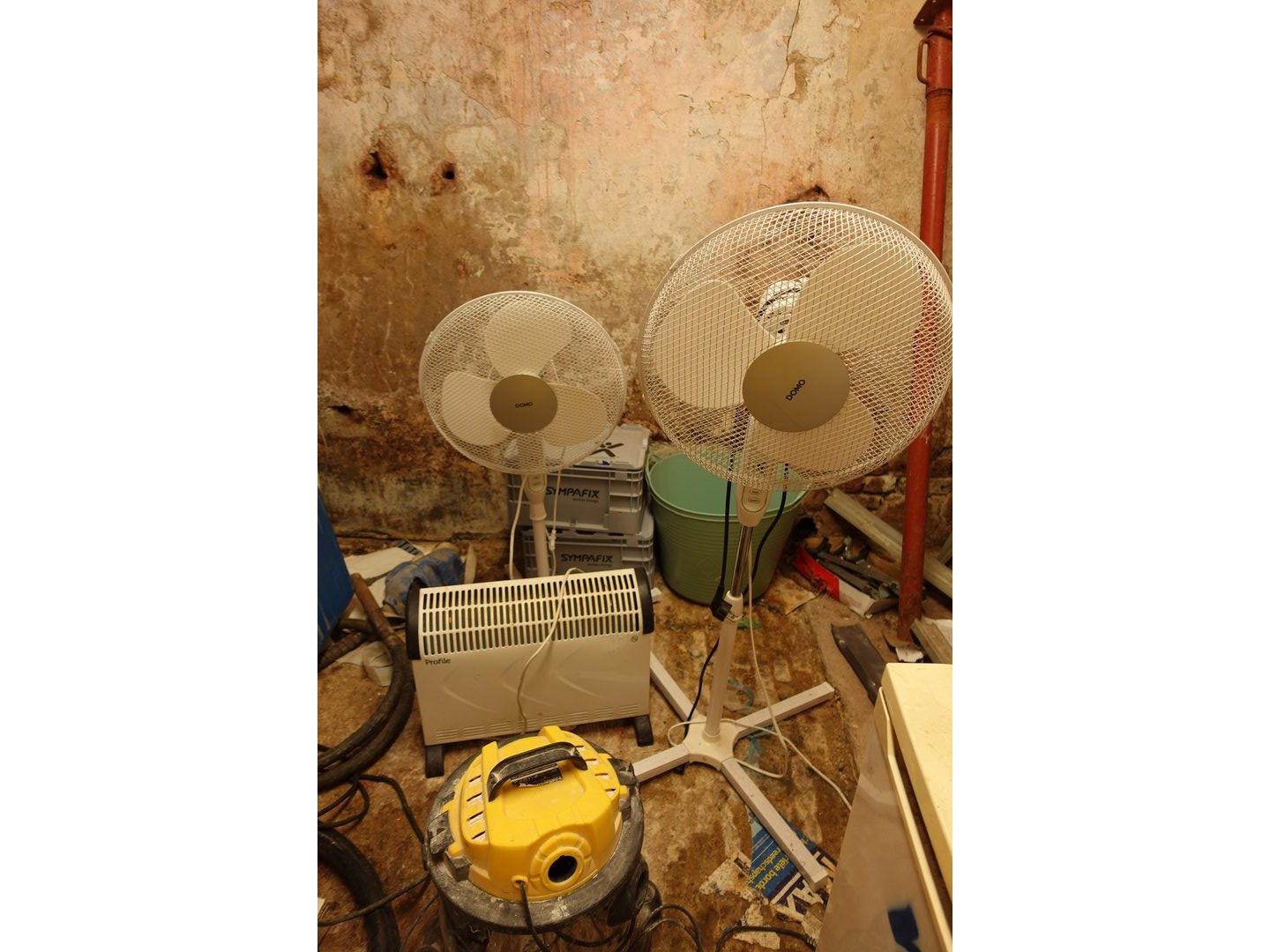 Ladder, 2x ventilator, 3x schoren, 1x verwarming, 2x trilnaald na te zien ! bureau met stoel ( Alles moet mee ! ) <br /> locatie: Kamer