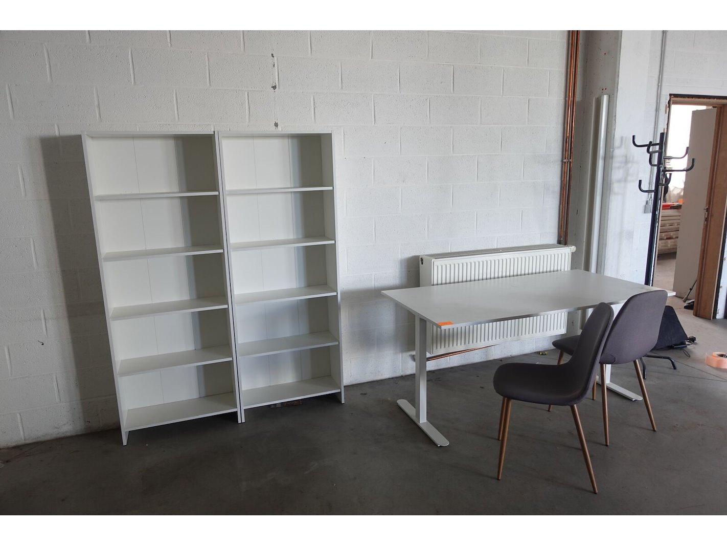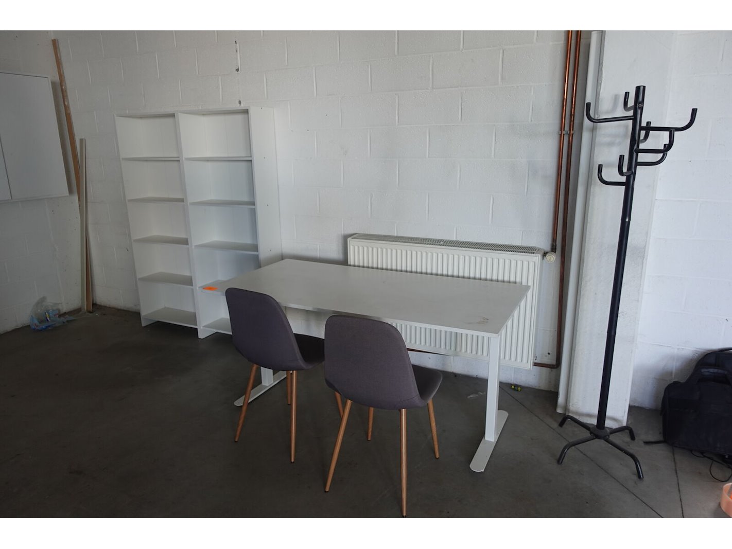 Tafel 1600x760x800, 2x stoel, 2x kast 670x1750x250 & kapstok <br /> locatie: 2de ruimte
