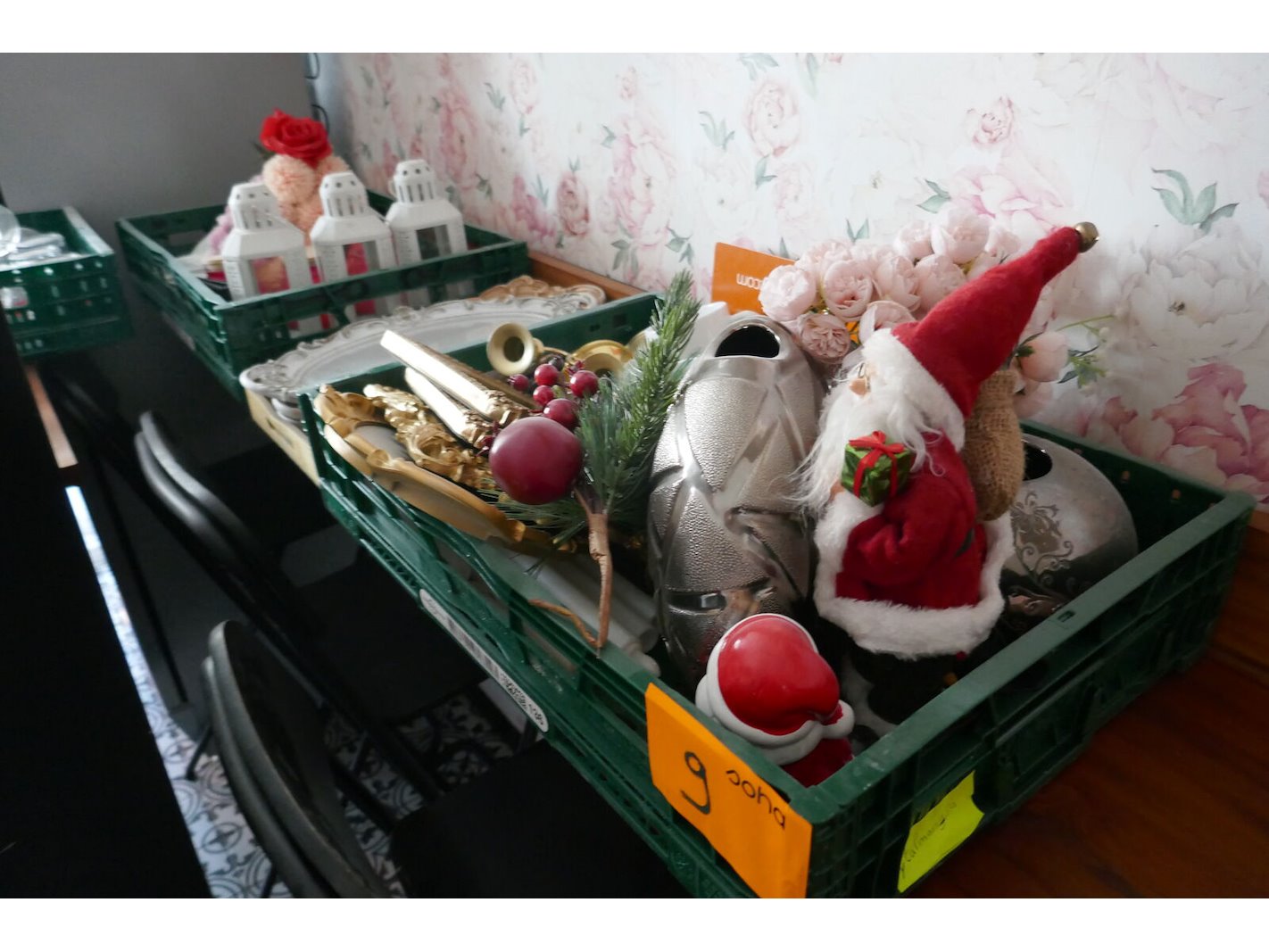 Kerstversiering - kaders - cupecakestandaard - spiegels- plastieken bloemen - kaarsenlantaarns - kroonluchters enz…