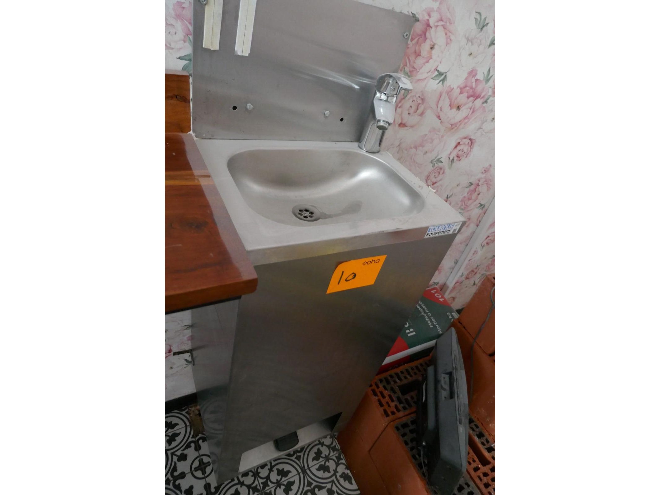 RVS handwasbak met voetbediening<br /> *merk : TOURNUS<br /> Zelf vakkundig te demonteren !!!