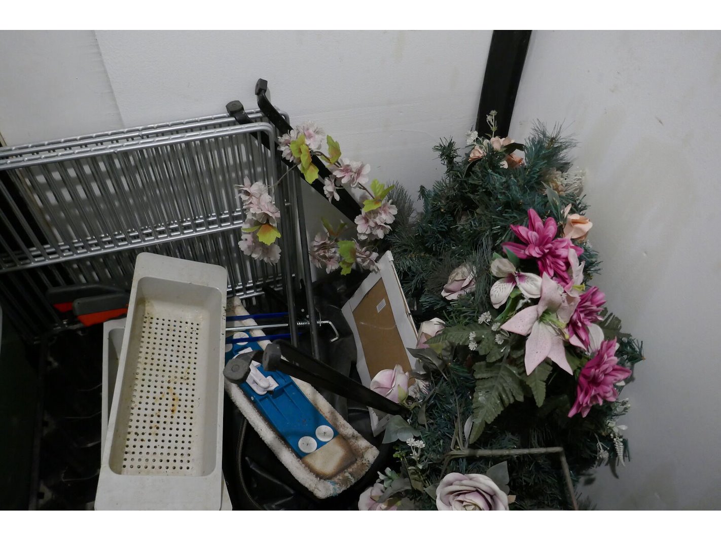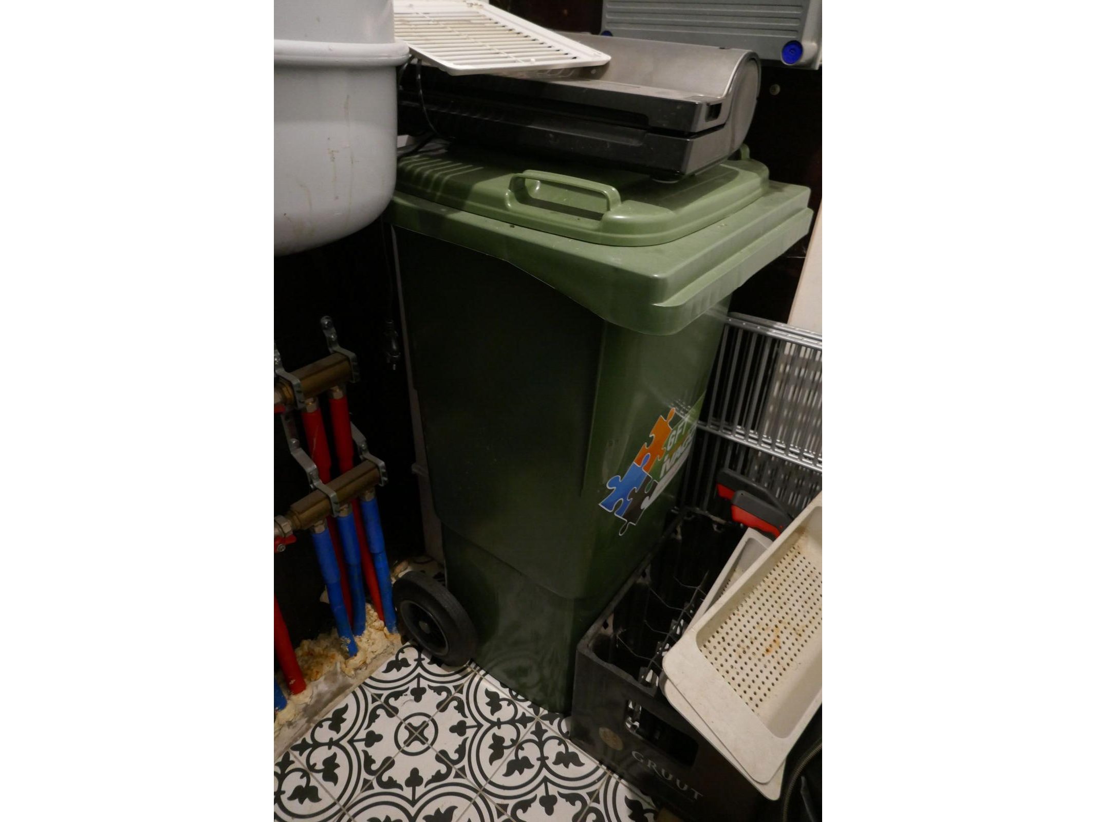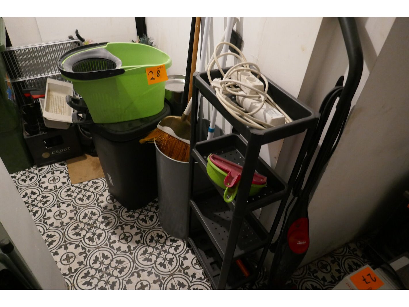 Oplaadbare stofzuiger - merk, VILEDA<br /> Divers poetsmateriaal + plastieken rekje<br /> Decoratieve item<br /> Plastieken afvalcontainer<br /> Vacuummachine - merk, SOLIS ( niet getest )