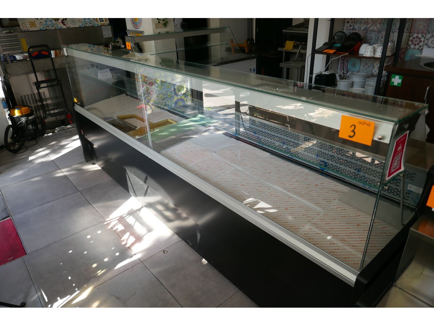 Gekoelde toonbank met glazen opzetvitrine <br /> *merk : DIAMOND<br /> model : r030/b5-r2<br /> bouwjaar : 2024<br /> *afmeting : L300xB78xH123 cm